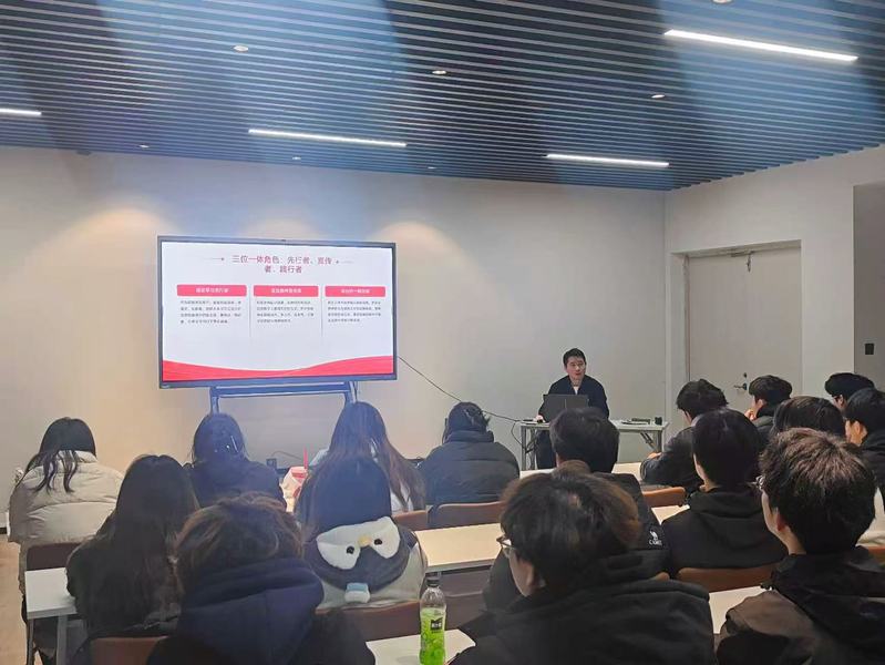 为深入学习贯彻党的二十届四中全会精神,引导青年学生骨干准确把握新时代新征程党的使命任务,12月10日晚6点,校团委在北校区“一站式”师生活动中心组织召开党的二十届四中全会精神专题学习会,校团委副书记蒋运奇作专题辅导,校学生会全体成员齐聚一堂,共同学习领会全会精神,凝聚奋进力量。