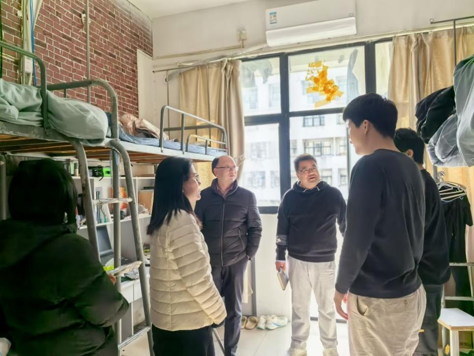 此次走访活动涵盖了学院多个学生宿舍区域。在走访过程中,学院领导与同学们进行了亲切交流。领导们仔细查看宿舍的设施配备、卫生状况以及安全情况,关切地询问同学们在学习、生活中遇到的困难和问题。朱明宇副院长特别提醒同学们要时刻注意宿舍安全,遵守学校的规章制度,保持良好的生活习惯。