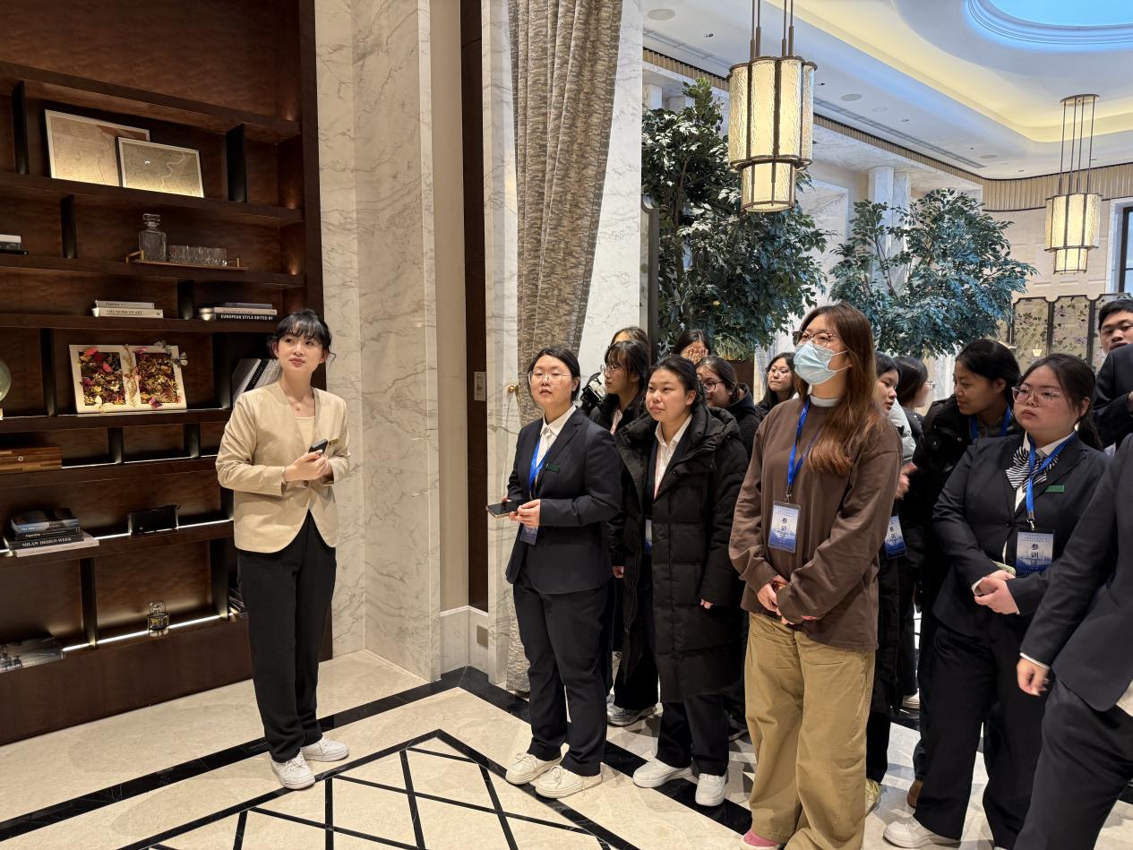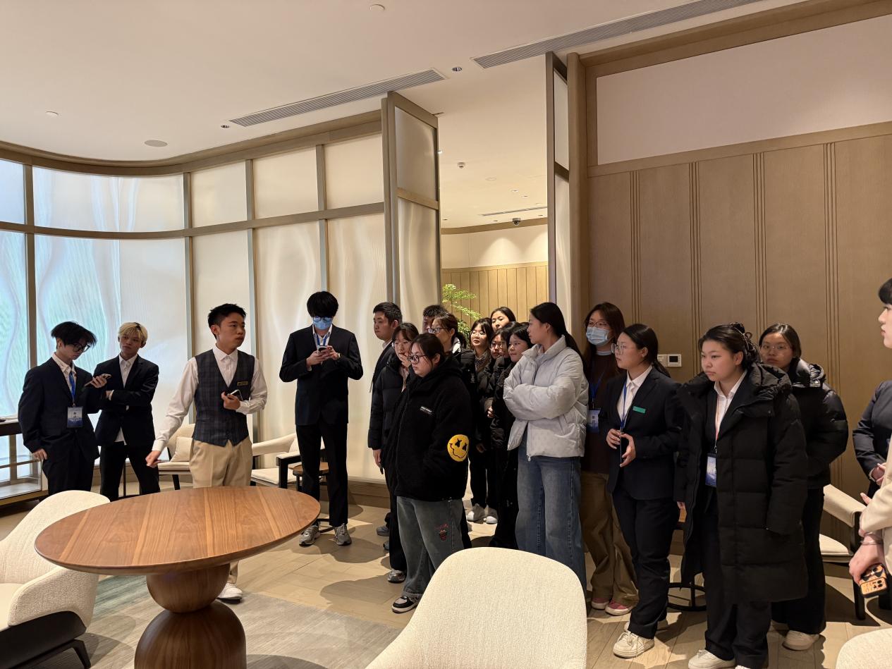 奢华酒店的沉浸式学习成为本次研学的一大亮点。在上海虹桥机场香格里拉酒店,学子们从大堂香氛的氛围营造、服务动线的科学设计,到细节处的人文关怀,全方位感受高端服务的专业内核。企业讲师分享的 “高端服务是文化洞察与情感共鸣的艺术” 这一理念,在学校教师的延伸解读下,让学子们深刻理解:专业服务不仅需要流程规范,更需要共情能力与文化素养的双重支撑。这种 “企业实操分享 +学校理论升华” 的解读模式,让学习更具深度与温度。