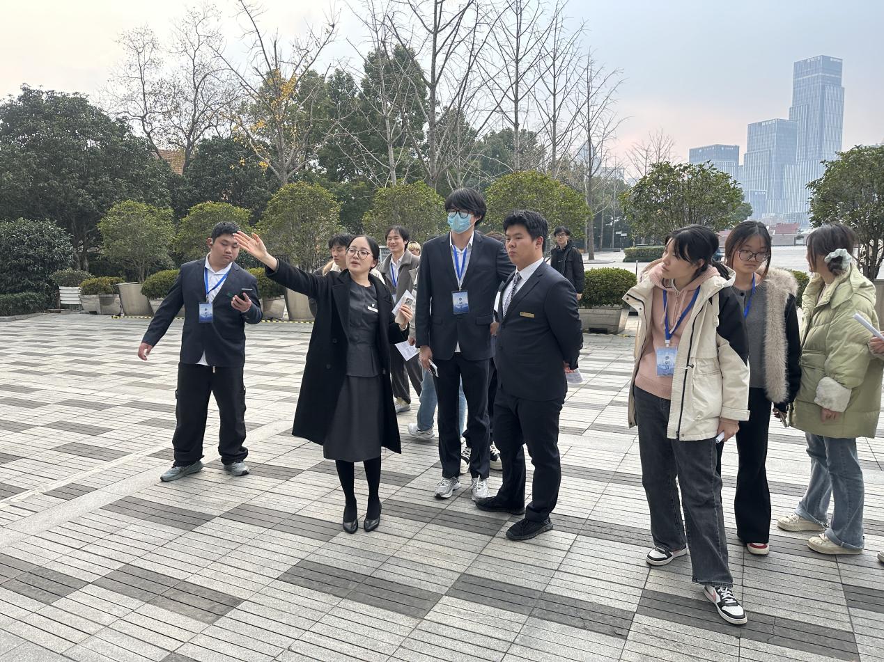 研学之旅以行业前沿观察为起点,学子们首先走进有 “四叶草” 之称的国家会展中心。作为亚洲规模领先的会展地标,这里不仅是城市经济的核心引擎,更是酒旅行业与会展经济深度联动的鲜活课堂。在学校教师与企业导师的联合引导下,学子们围绕 “会展需求如何驱动酒店服务升级”“高端酒店群如何承接会展辐射效应” 等问题展开实地探究,通过观察客流疏导、服务配套、需求对接等环节,将课堂上的 “产业联动理论” 转化为直观认知,为职业规划埋下务实的种子。