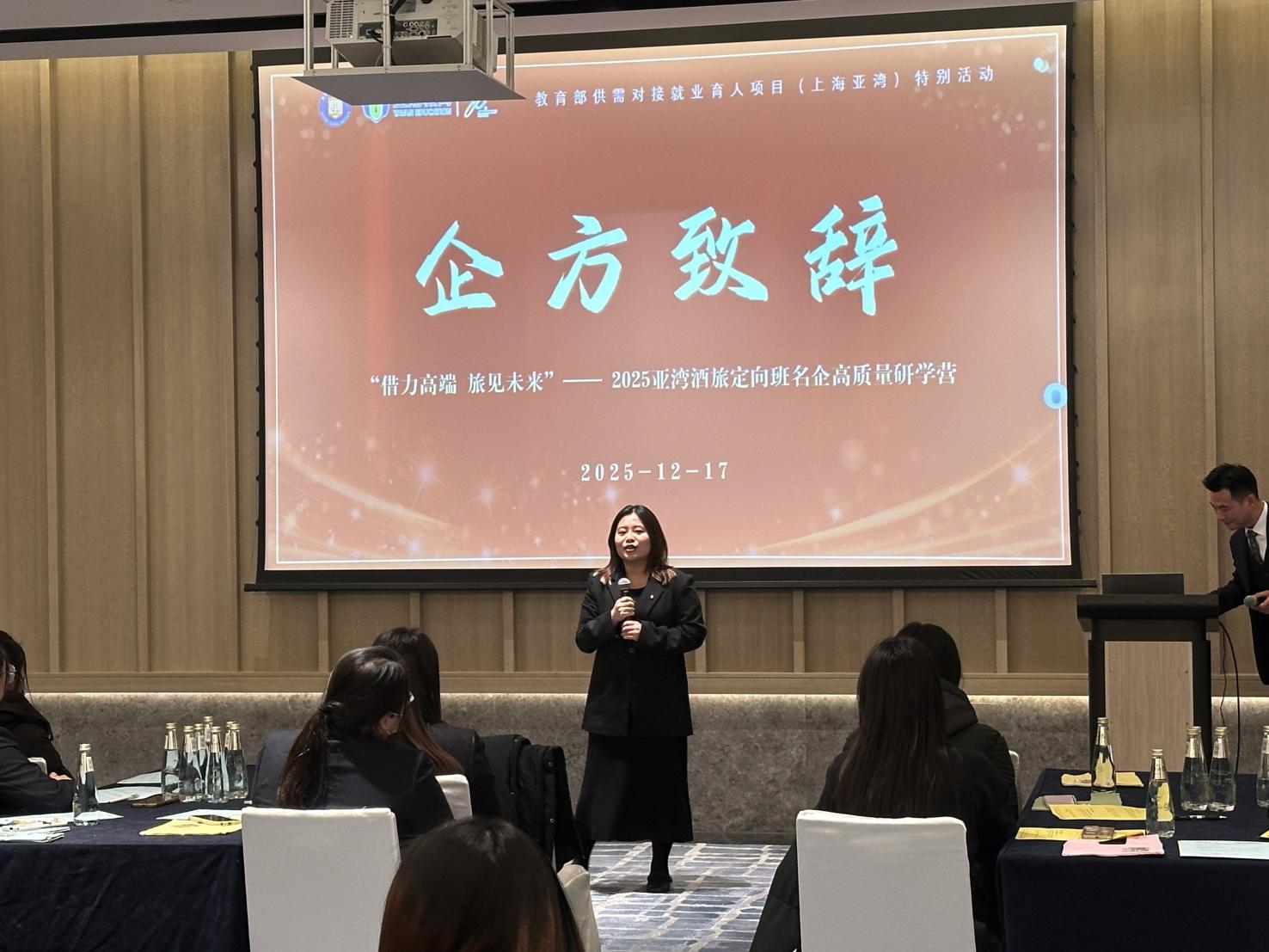 冬日沪上,浦江潮涌,酒旅行业的创新活力与城市底蕴交相辉映。12月17日,beat365体育亚洲官方网站携手上海亚湾酒店管理有限公司打造的 “借力高端 旅见未来”2025亚湾酒旅定向班研学营圆满收官。这场为期一日的沉浸式研学,是学校深化 “知行合一、产教融合” 育人理念的生动实践,更是为酒旅专业学子搭建的 “课堂对接行业、理论联结实践” 的优质平台,让学子在行走中感知行业脉搏,在体验中明晰成长方向。