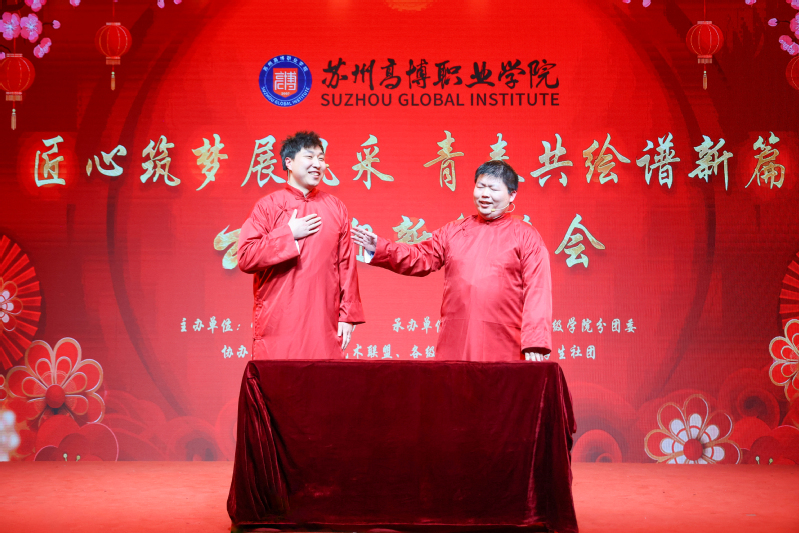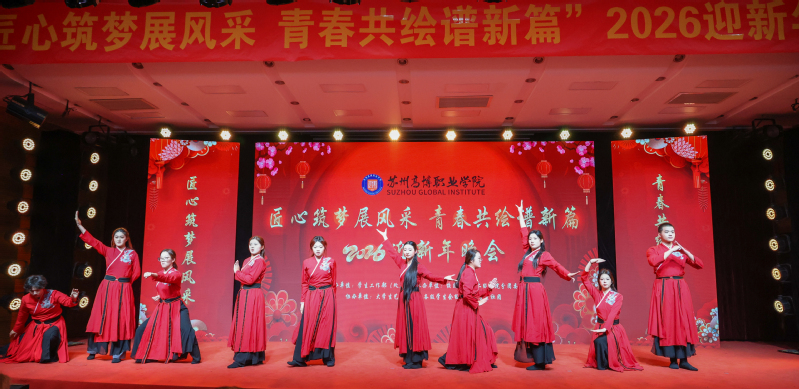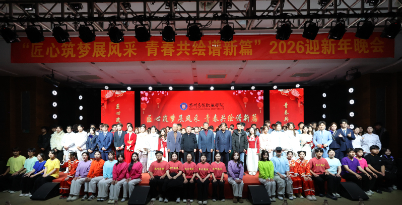 12月17日晚,学校“匠心筑梦展风采,青春共绘谱新篇”2026年迎新年晚会在实训楼报告厅隆重举行。全校师生代表欢聚一堂,在辞旧迎新的温馨时刻,以青春之名礼赞时代,以匠心之志共绘未来。学校校长张建初教授,党委副书记、副校长徐子良教授,副校长邹学海教授,校长助理黄兴教授,共建单位上铁苏州站团委高天书记以及各职能部门、各二级学院的领导和老师出席本次晚会,共同见证这场融思想深度、艺术高度与青春热度于一体的年度文化盛会。