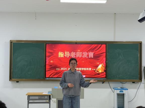表彰大会在庄重热烈的氛围中拉开帷幕。医学院分团委书记邵雪娇老师上台致辞,对本年度学生干部工作进行全面总结。她充分肯定并衷心感谢全体学生干部在过去一学年的辛勤付出与卓越表现,强调学生干部是师生之间的重要纽带,是推进学风与校园文化建设的中坚力量。邵老师指出,大家在班级管理、活动组织、服务同学等方面履职担当、乐于奉献,展现出医学院学子严于律己、积极向上的精神风貌。同时,她寄语全体学生干部珍惜荣誉、再接再厉,在未来继续提升自我、勇担责任,既做老师的得力助手,也做同学的贴心伙伴,以模范行动带动集体共同成长,为学院发展贡献青春力量。