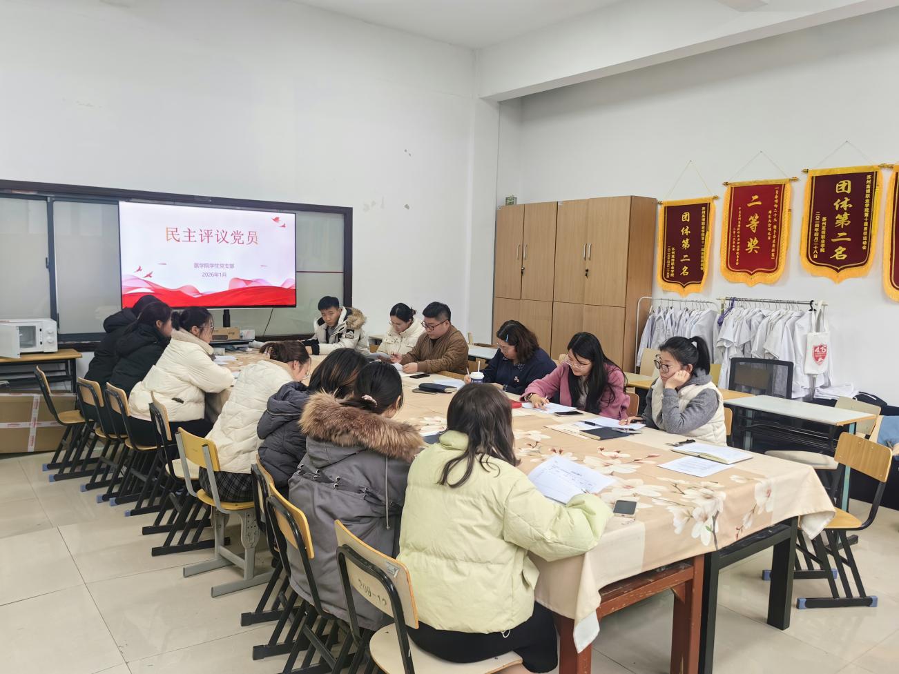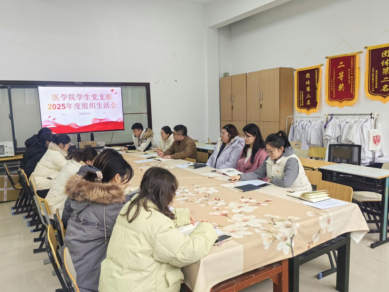 2026年1月4日,医学院学生党支部全体党员在10-228会议室召开2025年度组织生活会和开展民主评议党员工作,会议由学生党支部书记贺茜同志主持。