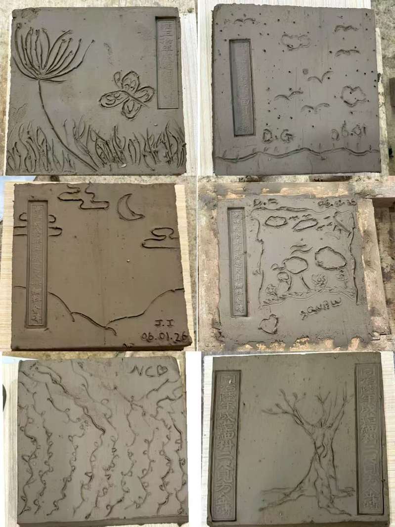 活动的高潮在于亲手体验环节。在博物馆专业老师的指导下,留学生们纷纷挽起袖子,投身于“小金砖”的手工制作中。从用力摔打泥料使其密实,到细心填入特制模具,再到精心刮平表面、反复修整光滑,每一步都需耐心与技巧。最让人展现个性的是刻字与装饰环节,大家发挥创意,有的刻上自己的名字,有的则画上喜爱的图案——树木、天空、蝴蝶、藤蔓……小小的泥坯瞬间成为承载个人情感与文化理解的独特作品。当最终成功脱模,捧着自己亲手制作的、虽显稚拙却充满心意的小金砖时,每个人的脸上都洋溢着满足与喜悦的笑容。