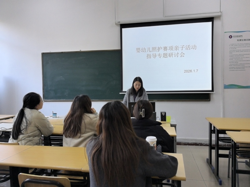 2026年1月7日,医学院幼教系组织开展婴幼儿照护赛项经验分享会,婴幼教研室主任祝欣月老师以亲子游戏活动指导为核心,为参会教师带来实用干货分享。作为2025年省赛指导教师,祝老师还结合参与金华职业大学组织的国培所学,让分享兼具实践深度与专业高度。