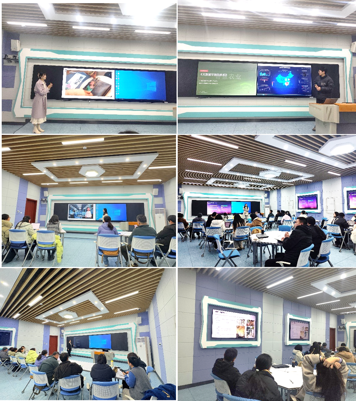 比赛现场,15-301智慧教室的数字化教学设备为教学展示提供了有力支撑。5支参赛团队依次登台,开展课堂教学展示。公共基础课程组教师凭借生动形象的授课语言、巧妙的思政融入设计,将抽象的理论知识与现实应用相结合,通过丰富的师生互动、生生互动,充分彰显了公共基础课程的育人价值;4个专业课程一组团队则聚焦专业核心知识点,注重逻辑梳理与案例解析,灵活运用智慧教室的多媒体资源与互动功能,直观呈现复杂的专业内容,教学设计科学合理、教学环节衔接流畅,凸显了职业教育的实践性与创新性。各团队展示风格鲜明、亮点纷呈,既深度契合“以学生为中心”的教学理念,也展现了我院教师在教学改革中的积极探索,赢得了评委与观摩教师的阵阵好评。