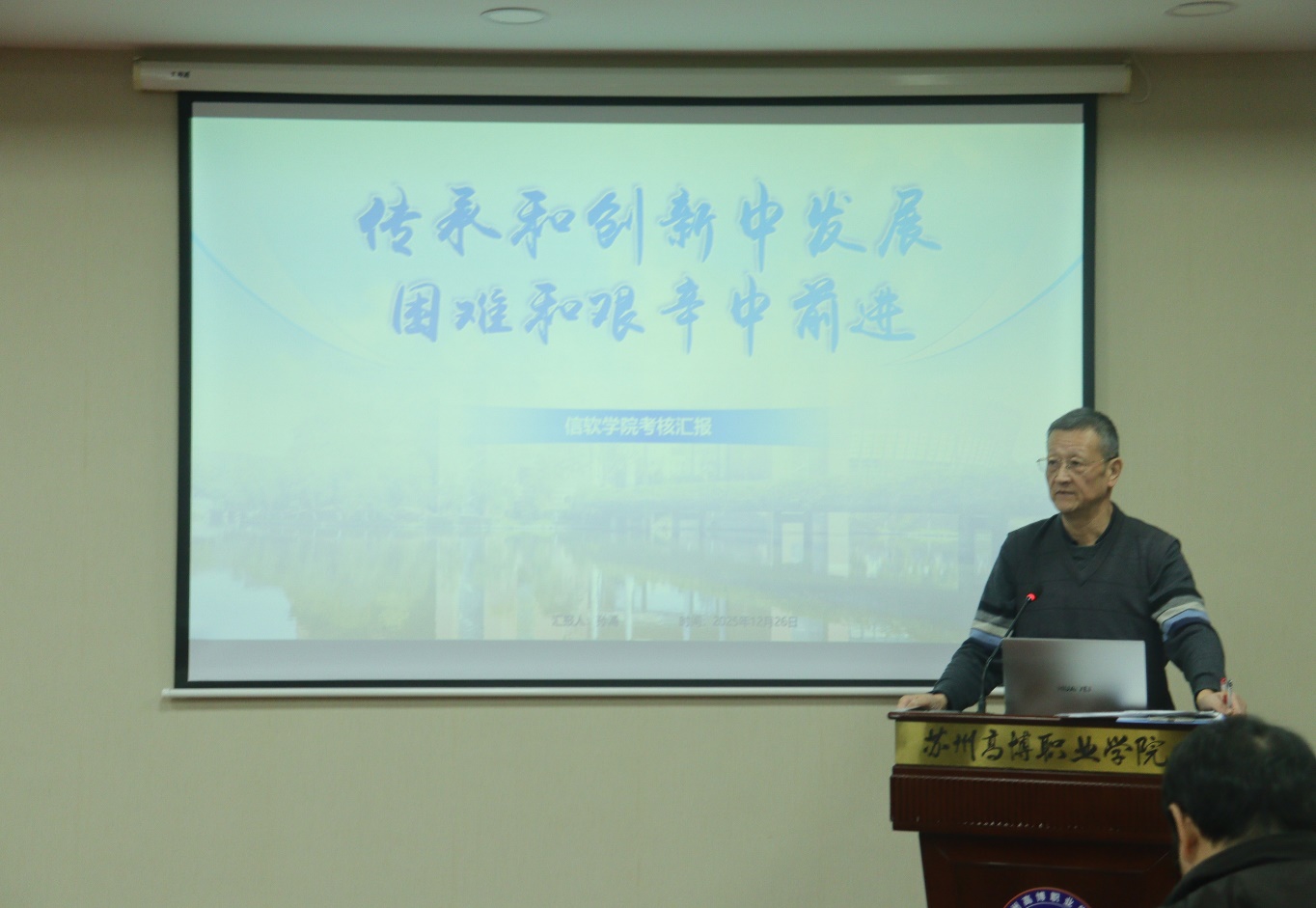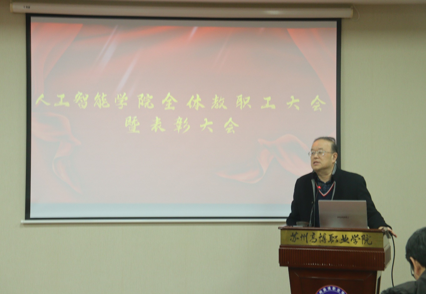 会上,学院院长孙涌作2025年度工作总结报告。报告以“传承和创新中发展,困难和艰辛中前进”为主题,围绕领导班子建设、教学建设、教师管理、学生管理、科研发展、校企合作及继续教育七大板块,全面回顾了学院本年度的工作成效与发展历程。教学建设方面,学院首次组队参与智能汽车竞赛,在无设备、无积累的零基础上,仅用三个月便斩获华东区二等奖,填补了学校相关领域空白,更以竞赛反哺教学,实现7个专业协同育人;教材建设成果丰硕,全年正式出版教材多部,其中校企合编的《工业互联网数据产业应用》获清华大学出版社免费出版。科研领域成绩亮眼,全年获批软件著作权150项,人均拥有量位居全国高职类院校前列,学院科研贡献占全校总科研的47%,横向到账经费大幅领先于其他二级学院。此外,学院创新民主管理模式,无锡会议成为民主决策的标志性事件,绩效考核方案征求意见阶段收集到近万字建议,充分彰显了教职工的主人翁意识。