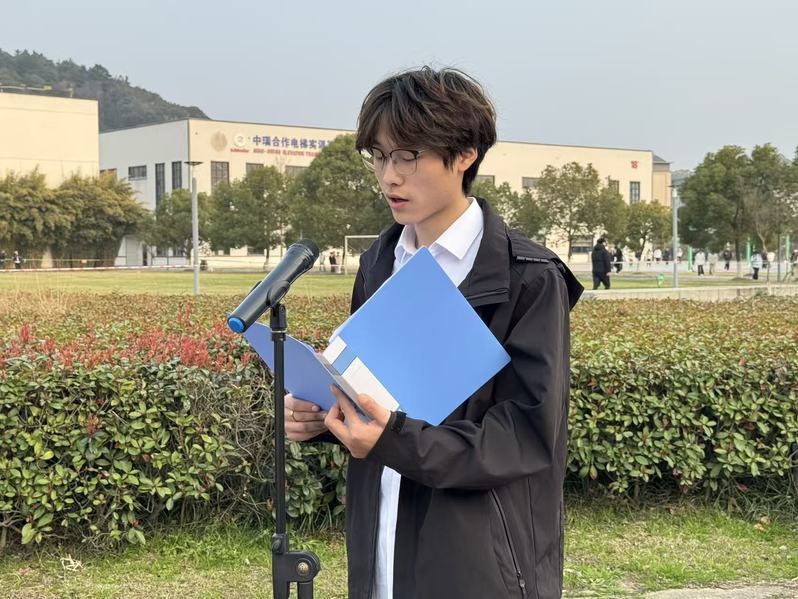 艺术创意设计学院2025级学生代表夏宇作国旗下演讲。他结合自身专业学习与寒假志愿服务经历,分享了对新时代雷锋精神的理解。他号召全体同学将雷锋精神融入日常,以“钉子精神”钻研专业技能,以奉献精神参与志愿服务,以奋斗姿态面对成长挑战,争做有理想、敢担当、能吃苦、肯奋斗的新时代青年,为学校优良学风建设贡献青春力量。