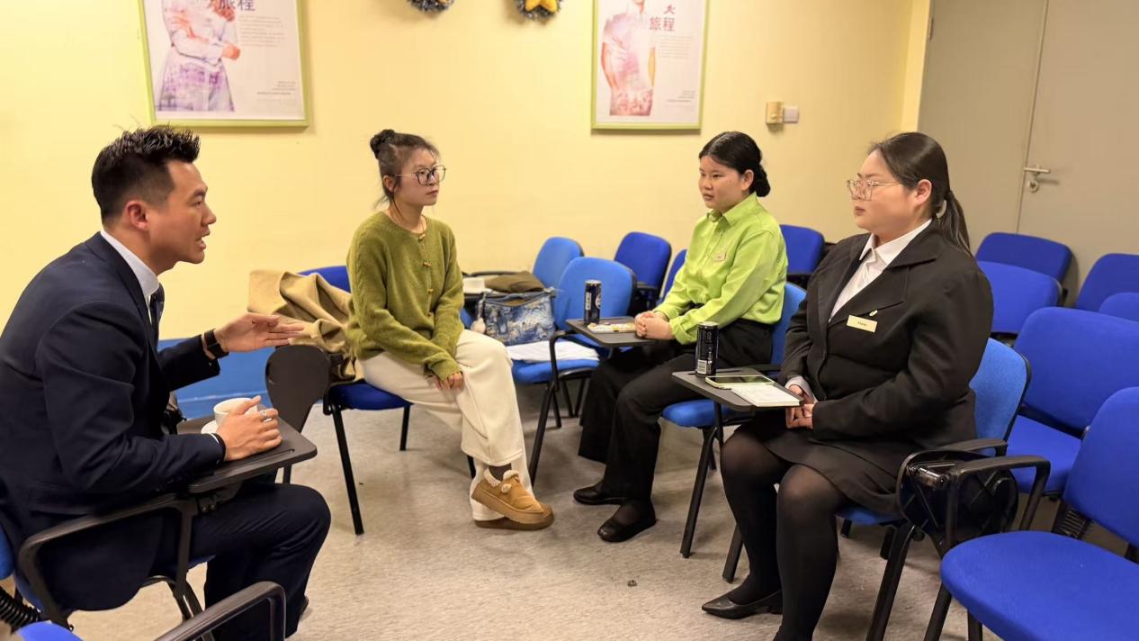 巡查组 A 线由罗正英教授带队,首先抵达上海夏阳湖皇冠假日酒店。罗主任与在岗实训学生逐一亲切交谈,详细询问岗位实操、日常工作、技能提升、食宿条件及职业发展规划,认真倾听学生实训心得与诉求。同时,与酒店人力资源负责人深入座谈,全面了解学生出勤表现、工作态度、团队协作及综合成长情况,就实训管理、人才培养等事项充分交换意见。巡查组实地察看学生宿舍与酒店文化走廊,宿舍环境整洁舒适、配套设施完善,酒店文化氛围浓厚,为学生实训生活提供了优质保障。酒店人力资源总监对我院学生给予高度评价,称赞同学们责任心强、踏实肯干、虚心好学,能够快速适应岗位要求、融入团队工作,酒店将把beat365官网学生纳入重点培养对象,搭建系统培训、多岗历练、清晰晋升的成长平台,助力学生成长为高素质酒旅专业人才。