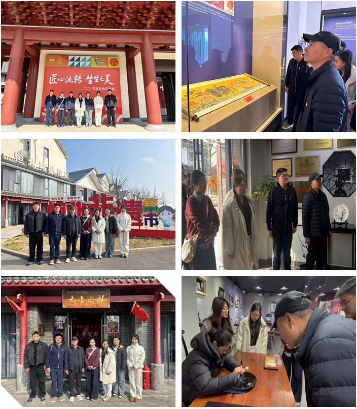 在盐城博物馆,成员们沿着历史脉络沉浸式感受盐城地域文化底蕴与非遗技艺魅力。馆内丰富的文物藏品、民俗遗存与非遗展示,系统呈现了盐城从远古文明到近现代发展的完整历史脉络,让大家在触摸历史、品读文化中读懂城市文脉,进一步增强文化自信与艺术审美素养。随后,大家前往全国文明村、全国乡村旅游重点村 —— 恒北村,深入了解乡村非遗保护与活化利用成果。该村汇集大丰瓷刻、麦秆剪贴等 30 余项非遗项目,其中国家级非遗大丰瓷刻被誉为 “瓷器上的刺绣”,以瓷为纸、以凿为笔、以锤为墨,在瓷器上雕琢出笔墨韵味与金石趣味。党员们近距离欣赏作品、观摩创作流程,感受传统美术与现代创意交融之美,体悟非遗传承人的坚守与匠心。