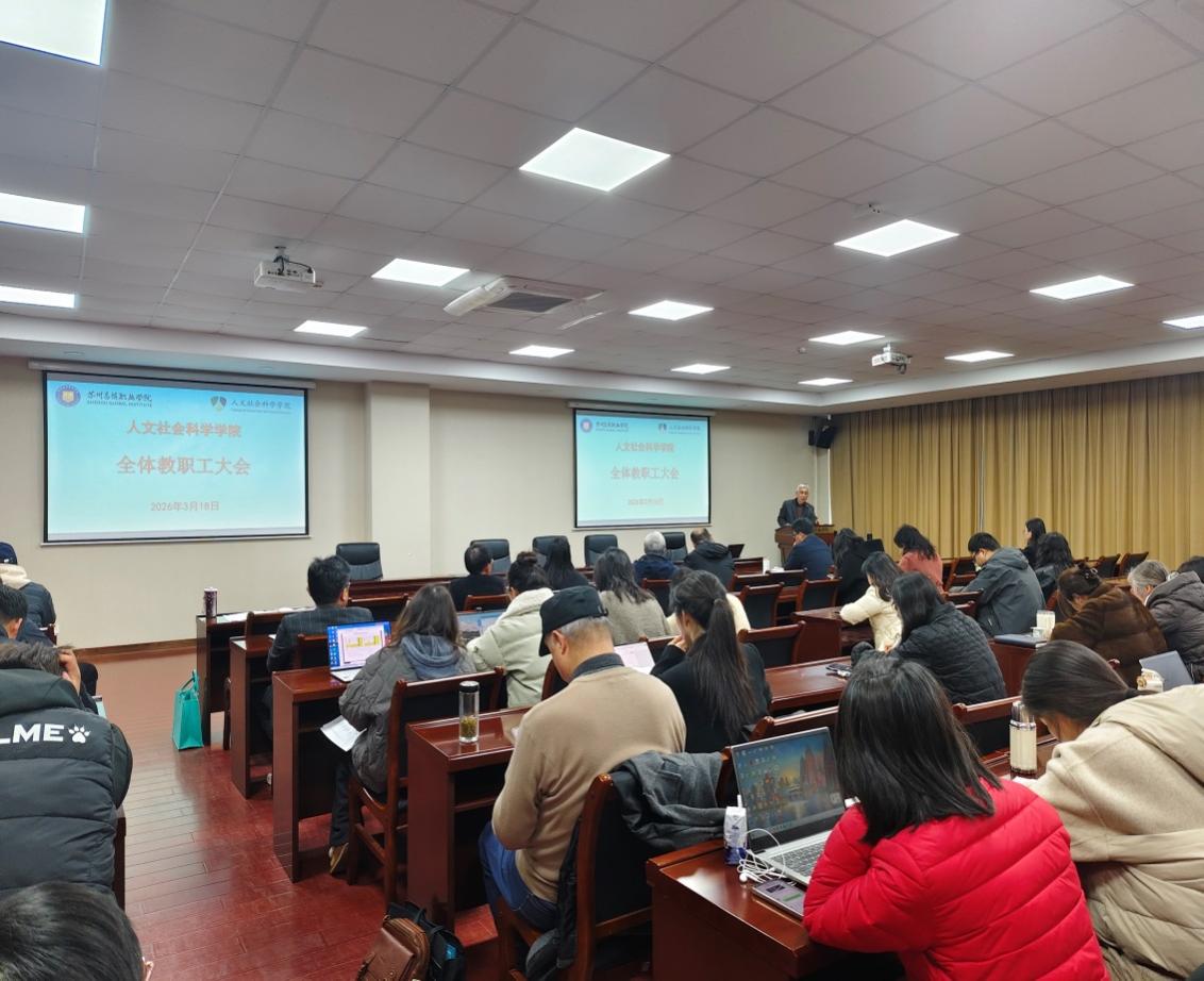 为统一思想、明确目标、压实责任,确保本学期各项工作高质量开局,3月18日,人文社会科学学院召开2026年春季学期全体教职工大会,院党政班子成员、特聘教授以及全体教职员工参加了会议。会议由校长助理、学院院长黄兴主持。