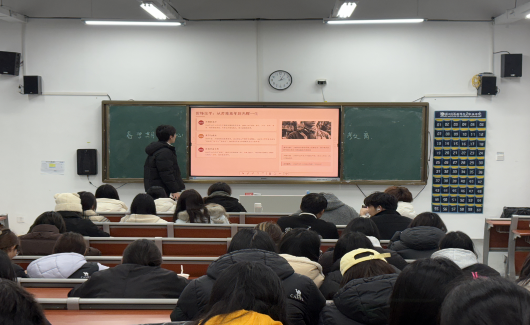 为深入学习贯彻党的二十大精神,引导广大青年学生赓续红色血脉、筑牢信仰之基,推动雷锋精神融入校园日常、化作青年自觉行动,商学院分团委于3月19日下午六点,在32-114教室组织开展以“传承雷锋精神,坚定理想信念”为主题的信仰公开课。本次活动由学生会志愿服务部副部长陶力同学担任主讲,大一全体团员学生积极参与,共同感悟雷锋精神的时代价值,汲取奋进力量。